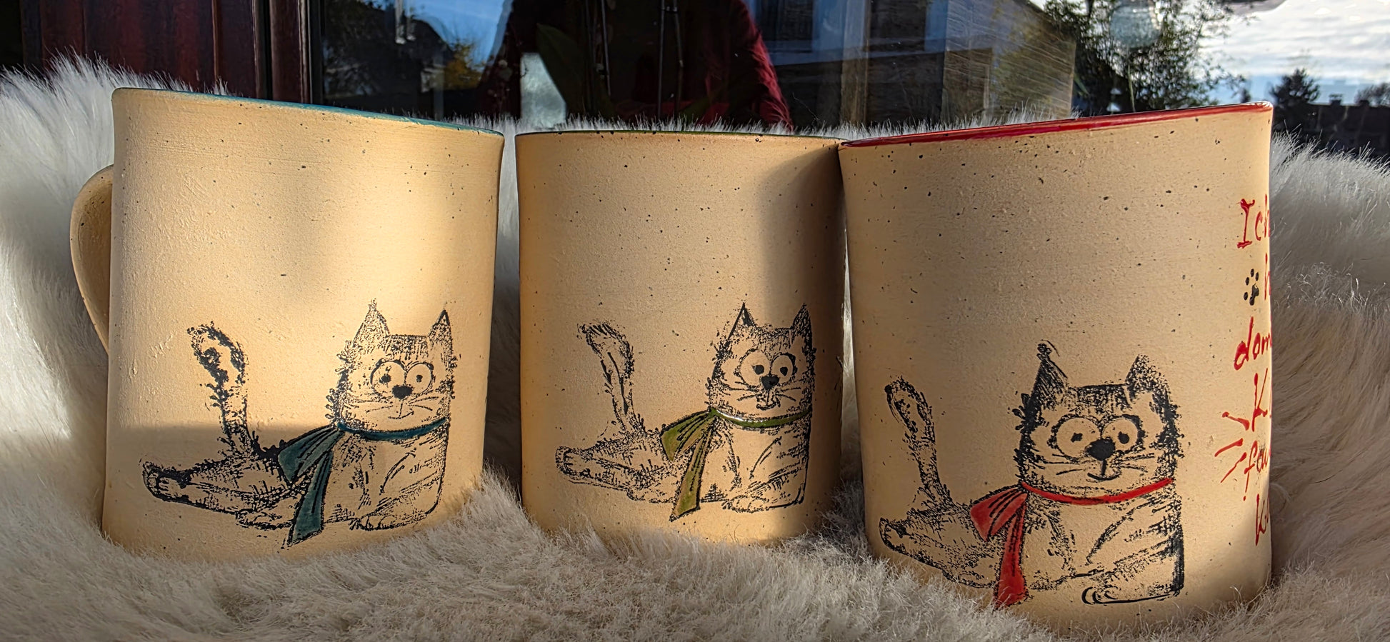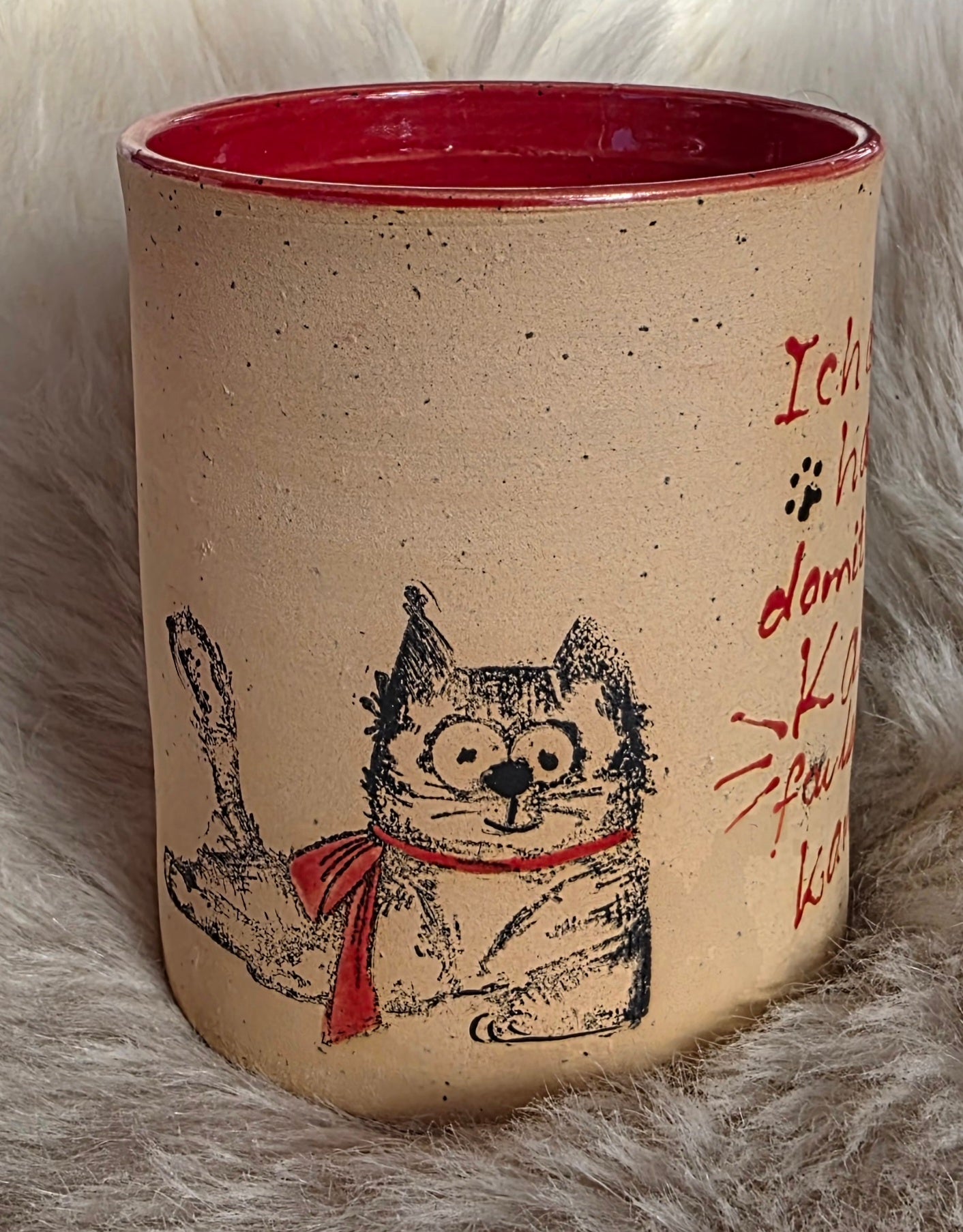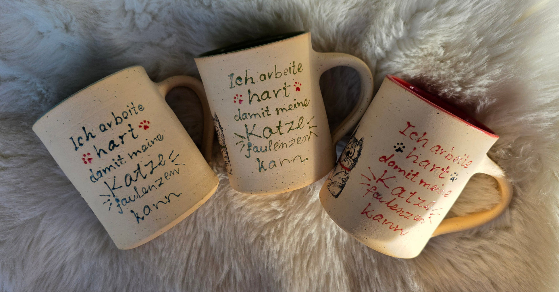 Jede unserer Tassen wird mit viel Liebe in Handarbeit gefertigt und ist damit ein echtes Unikat. Die charmanten Katzenmotive bringen Freude in jeden Tag – perfekt für Katzenfreunde und Tierliebhaber. Dank der stabilen, geraden Form steht sie sicher auf jedem Tisch und macht auch im Büro eine gute Figur.