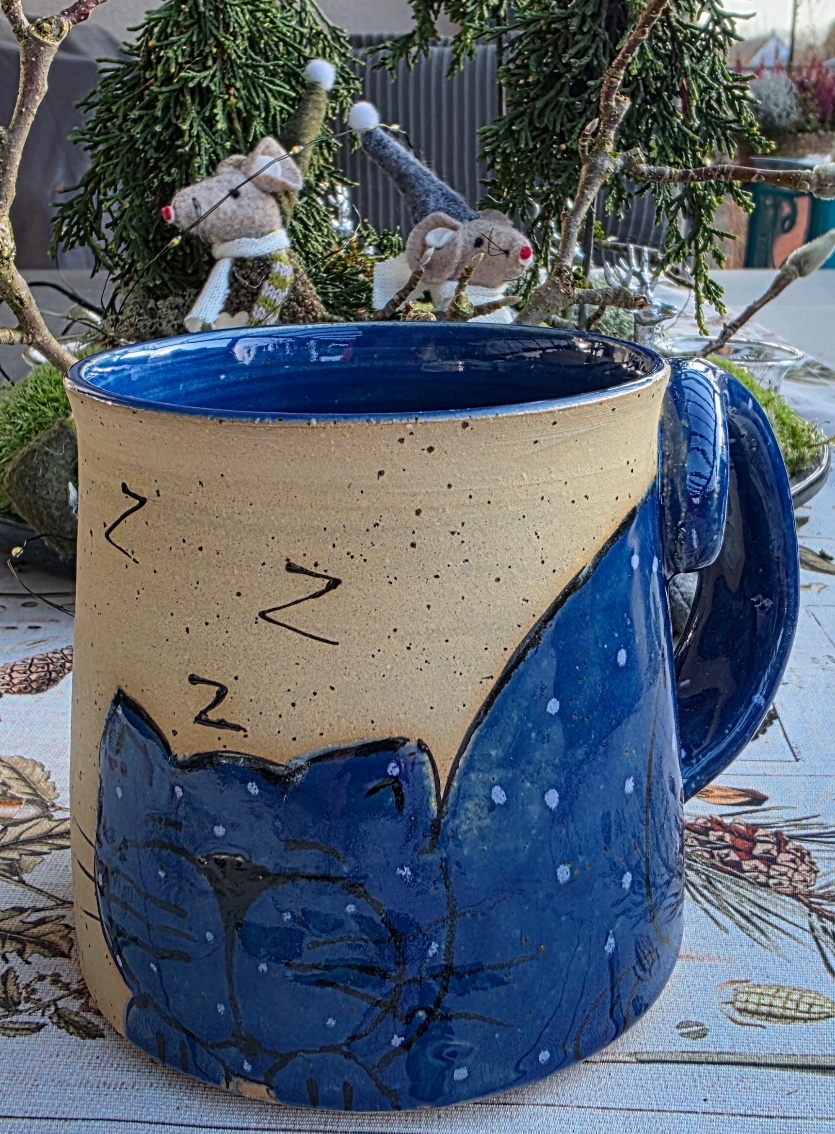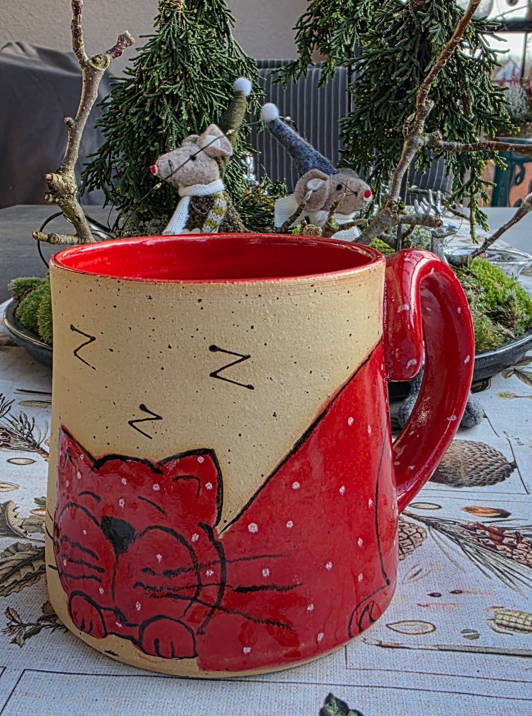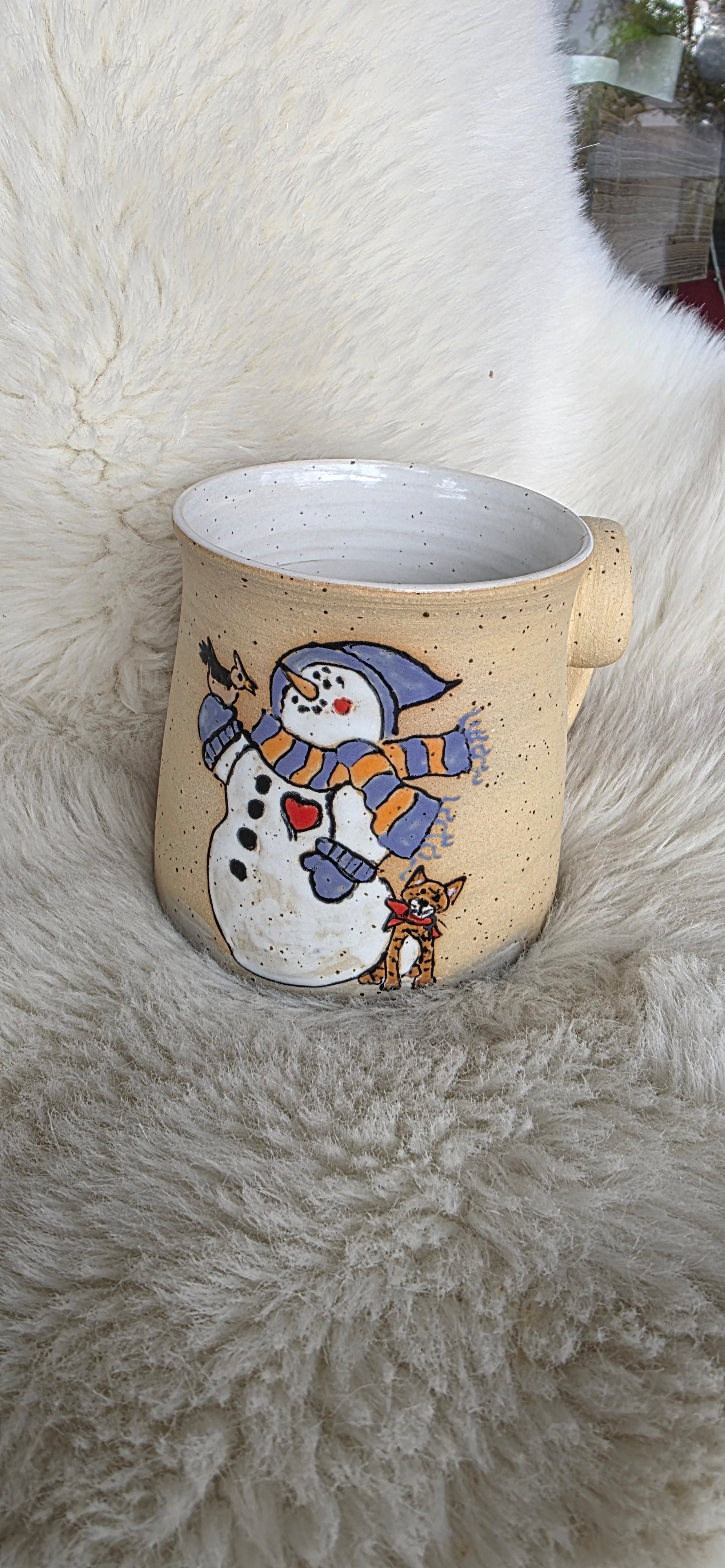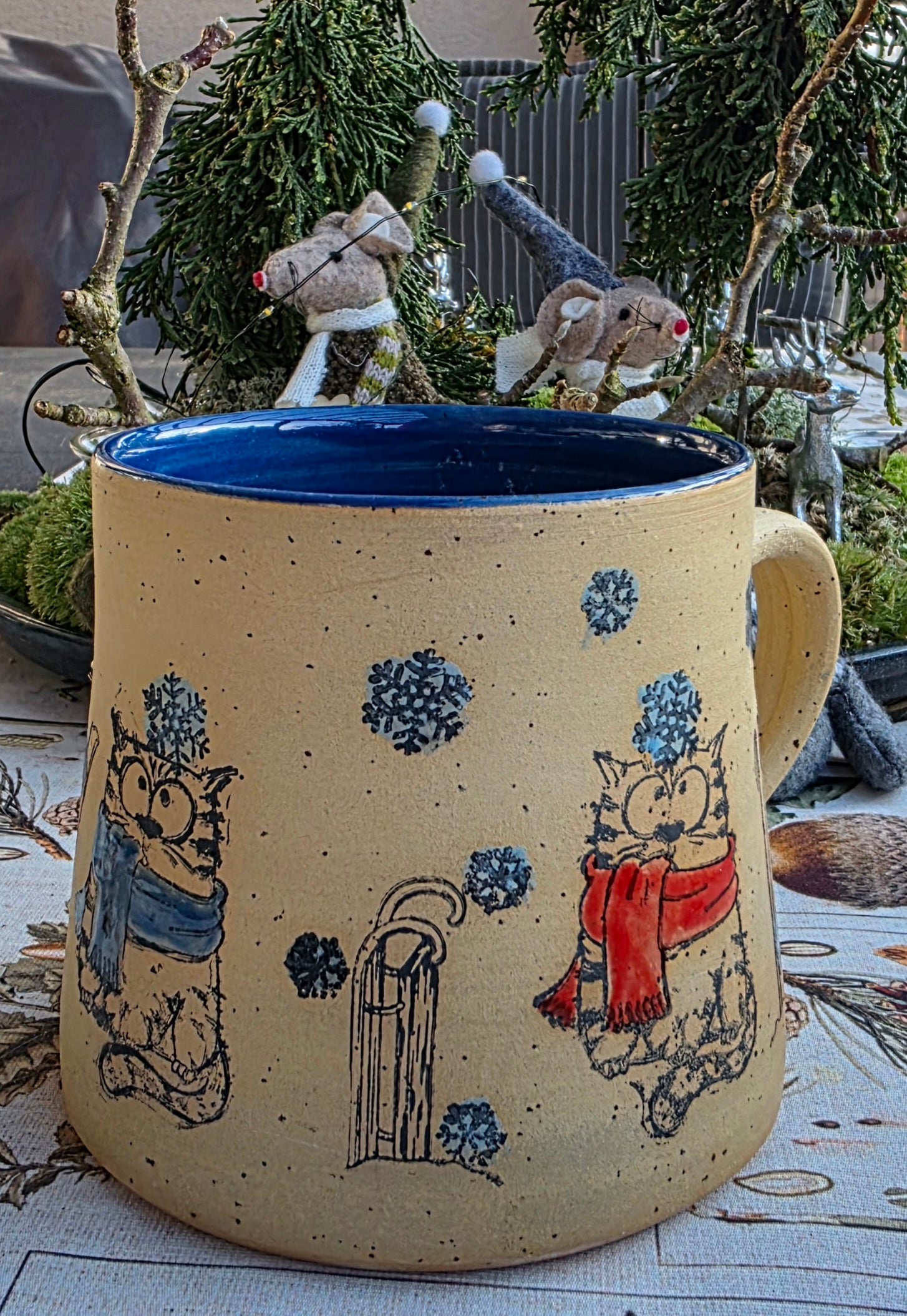 Tasse „Winterfreunde“ – Handgefertigte Wohlfühltasse mit Schwanzhenkel