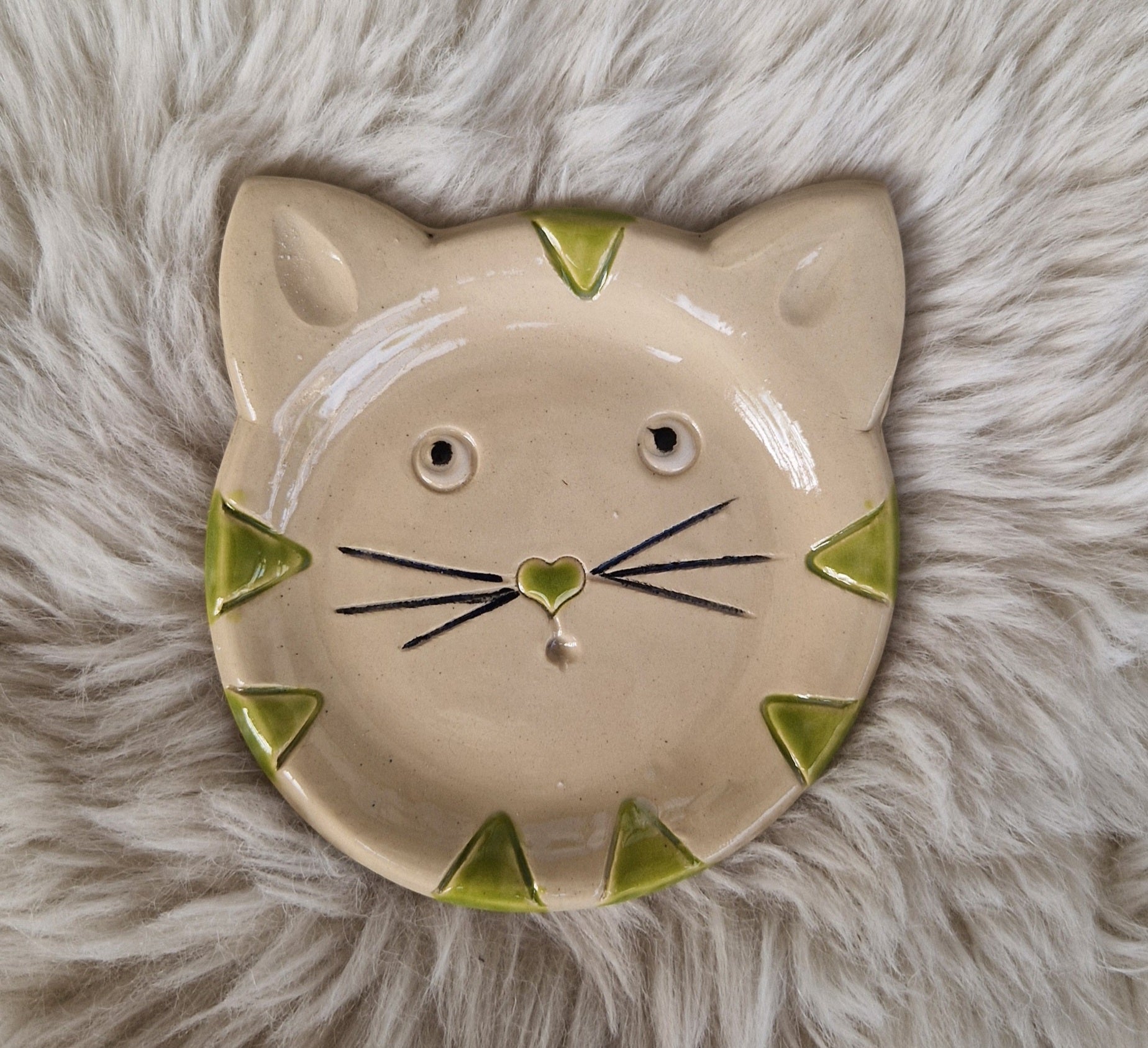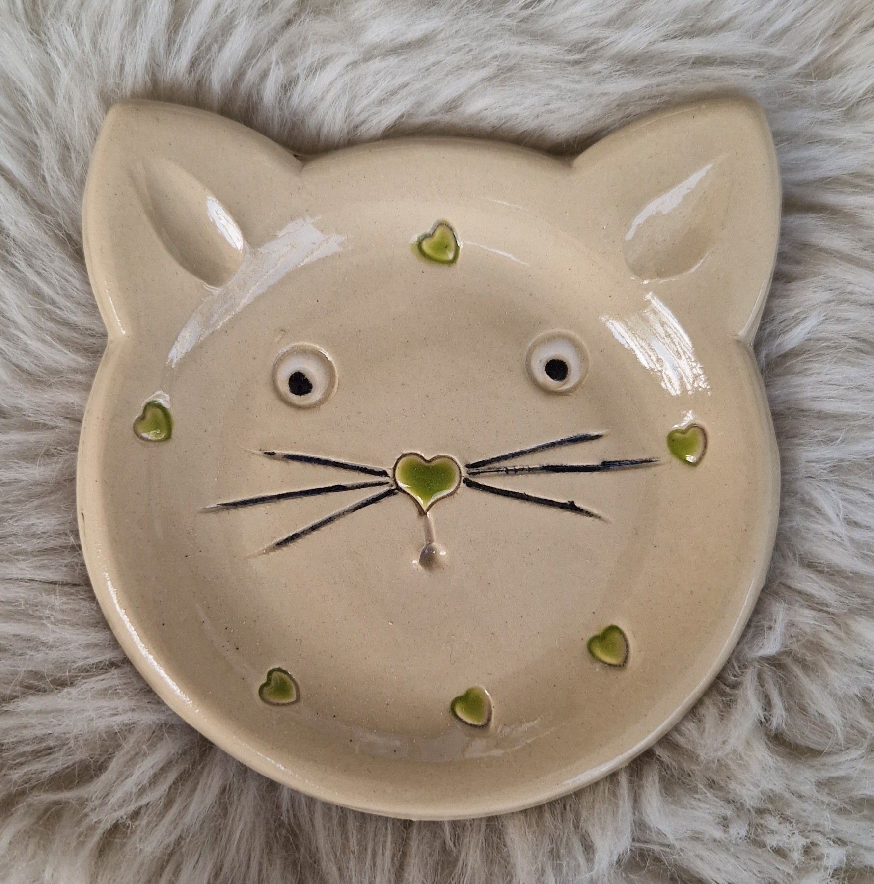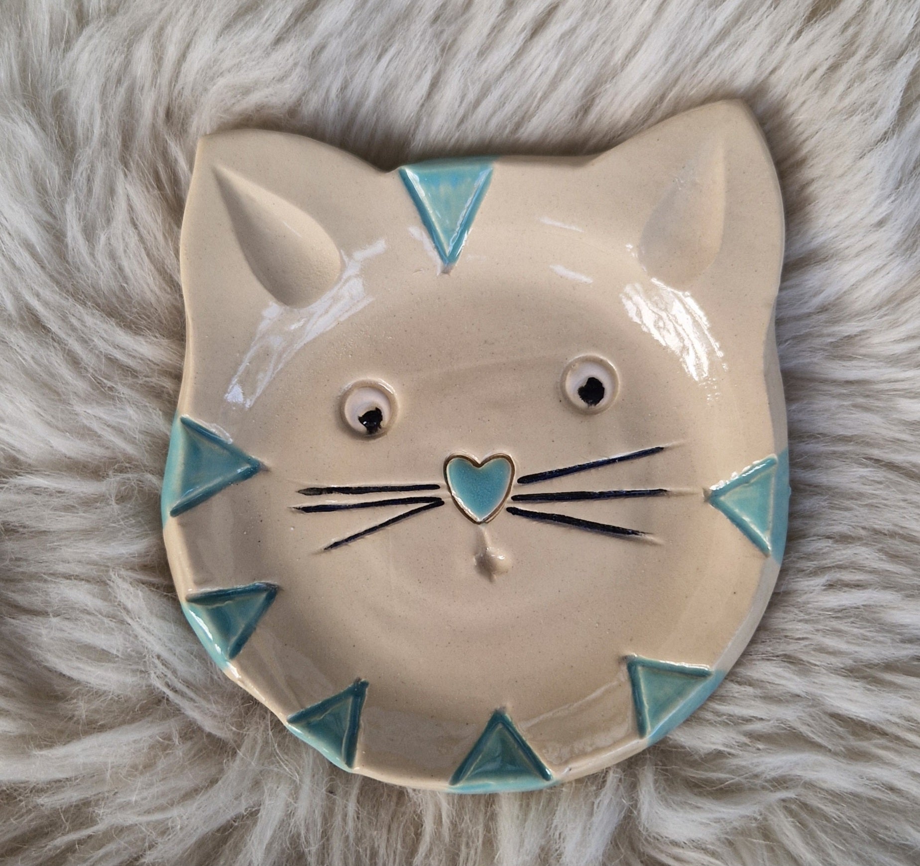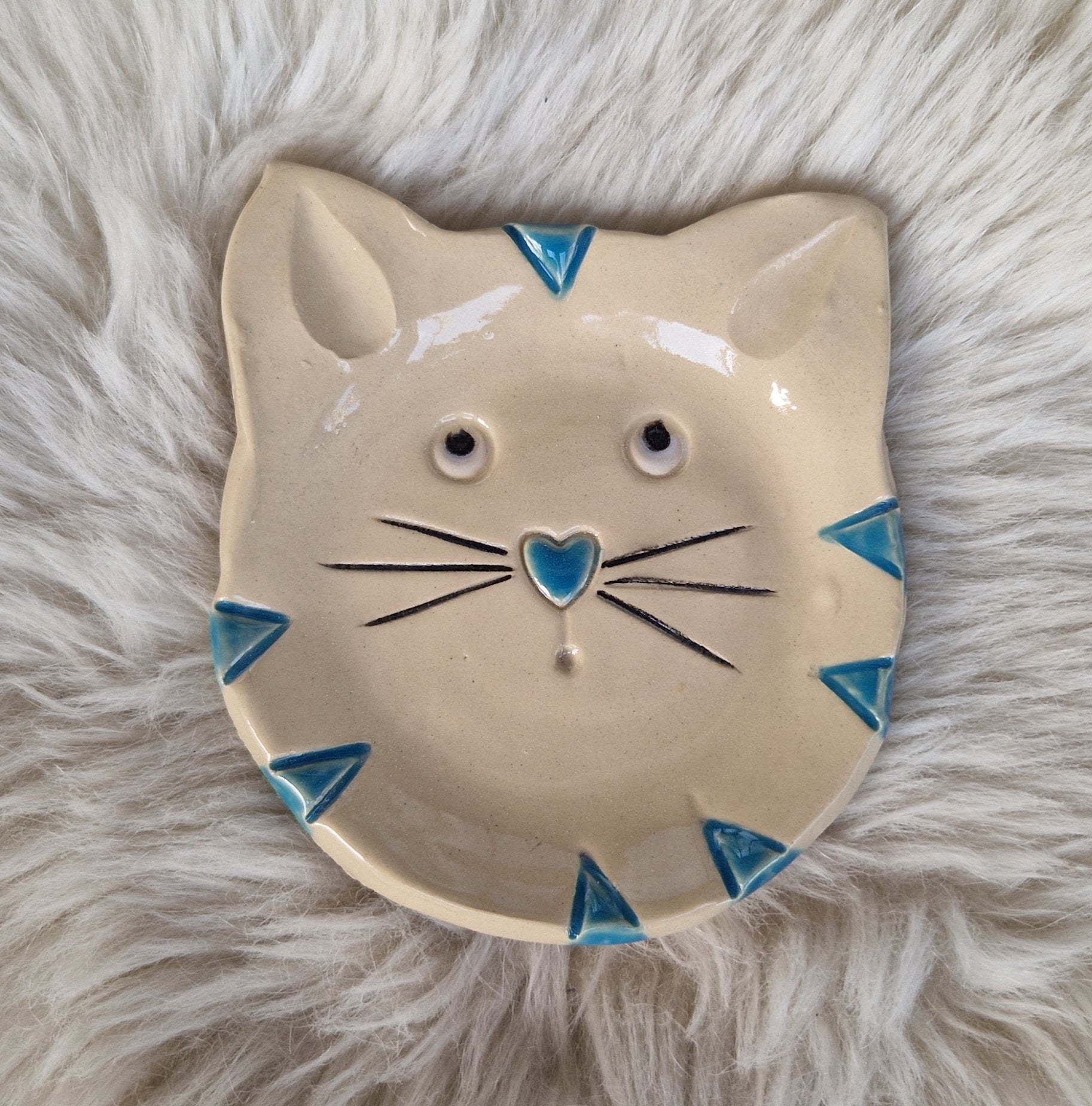 Praktischer Schleckteller für Katzen in formschöner Katzenkopf-Optik. Ideal für Leckerlis, Schleckpasten oder als Medikamententellerchen.