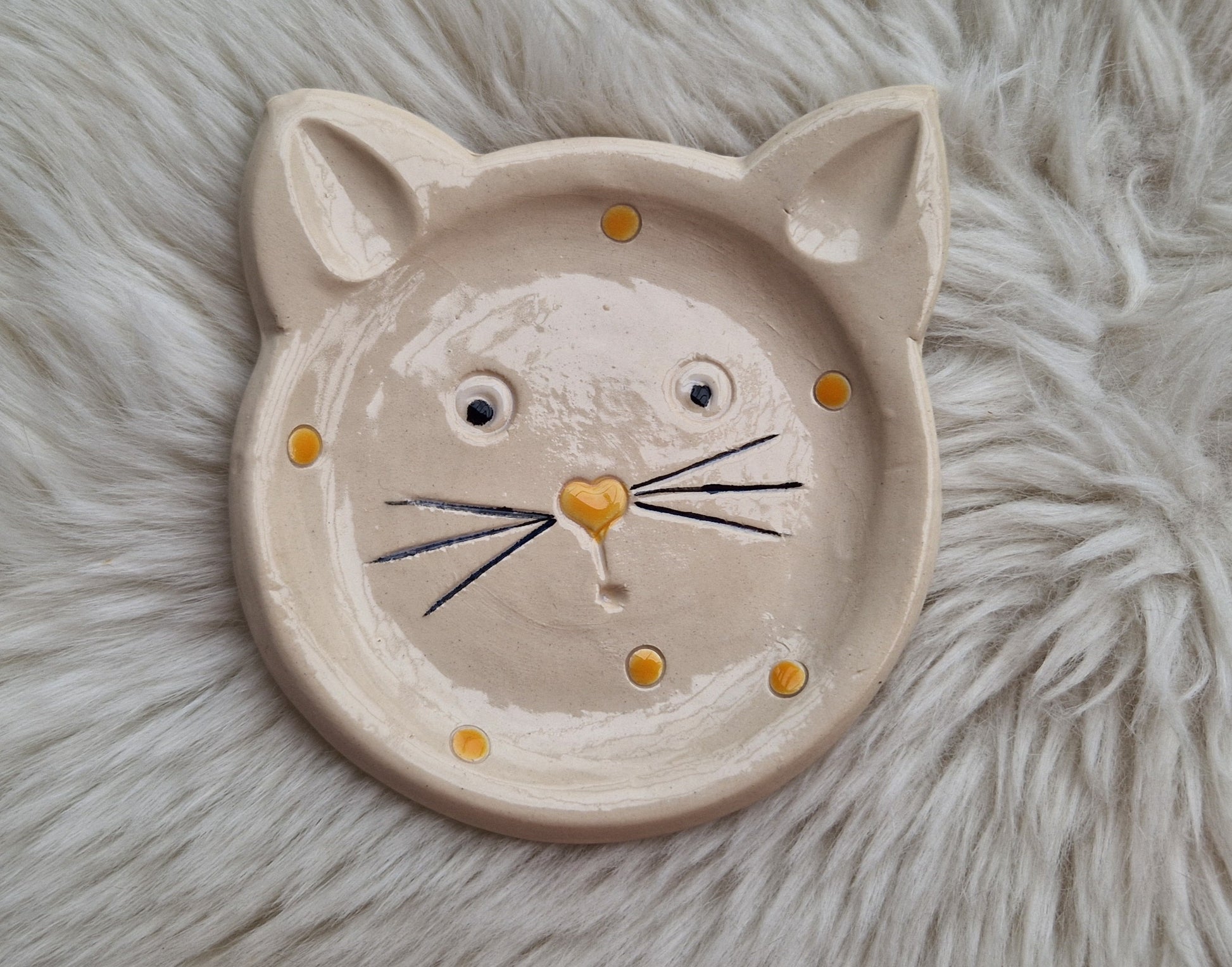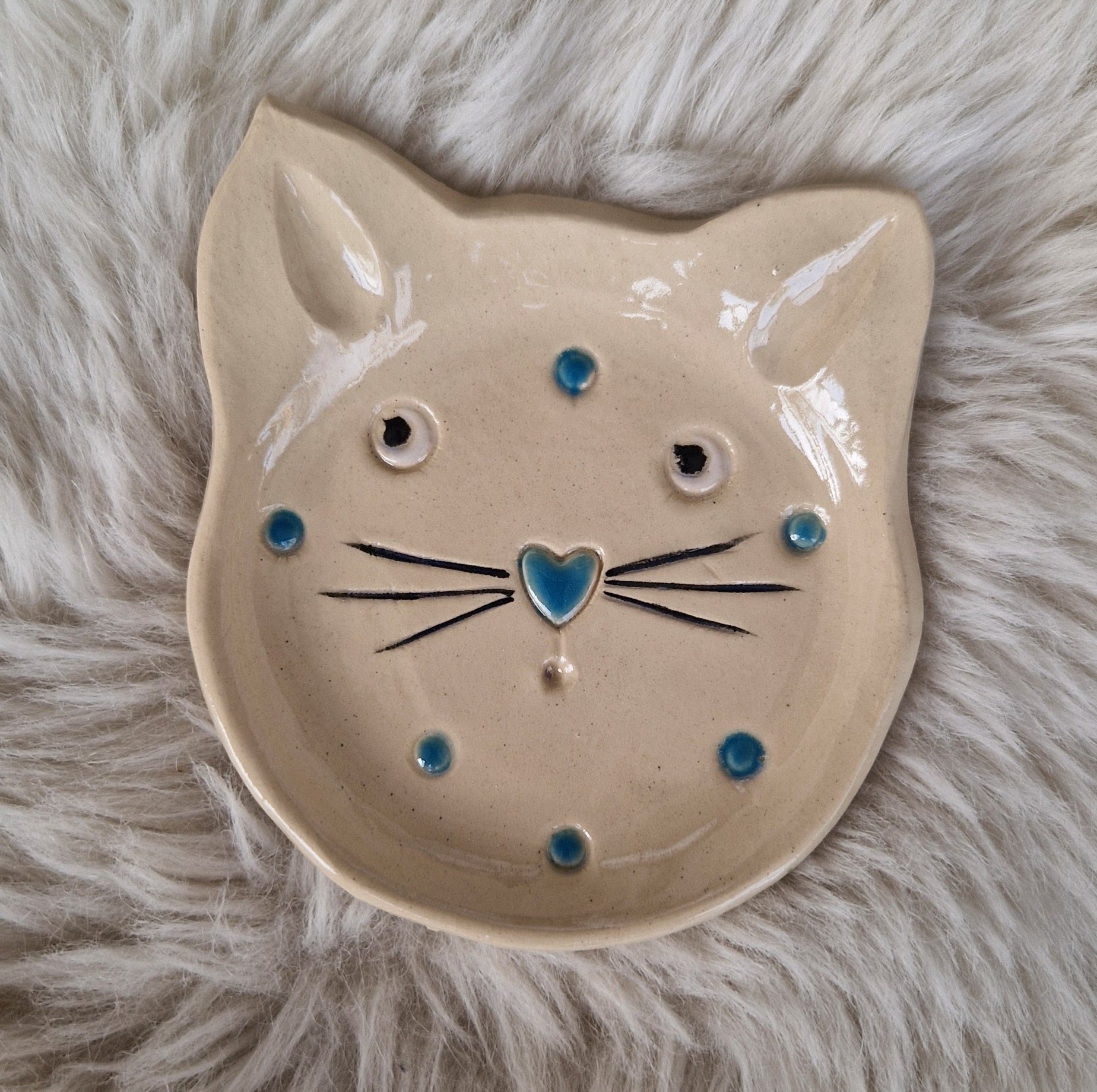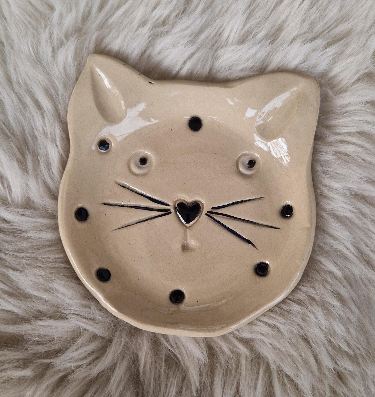 Praktischer Schleckteller für Katzen in formschöner Katzenkopf-Optik. Ideal für Leckerlis, Schleckpasten oder als Medikamententellerchen.
