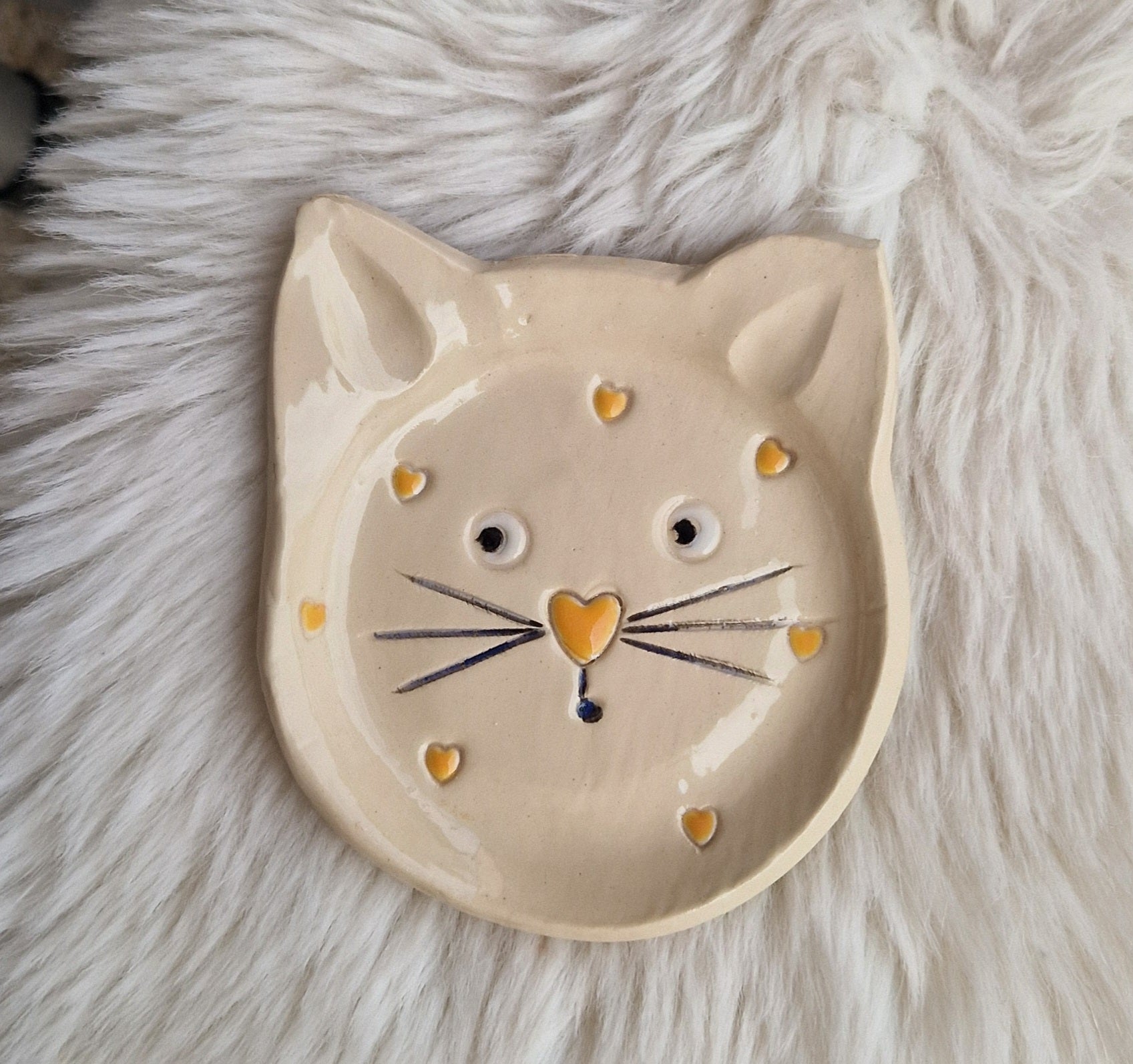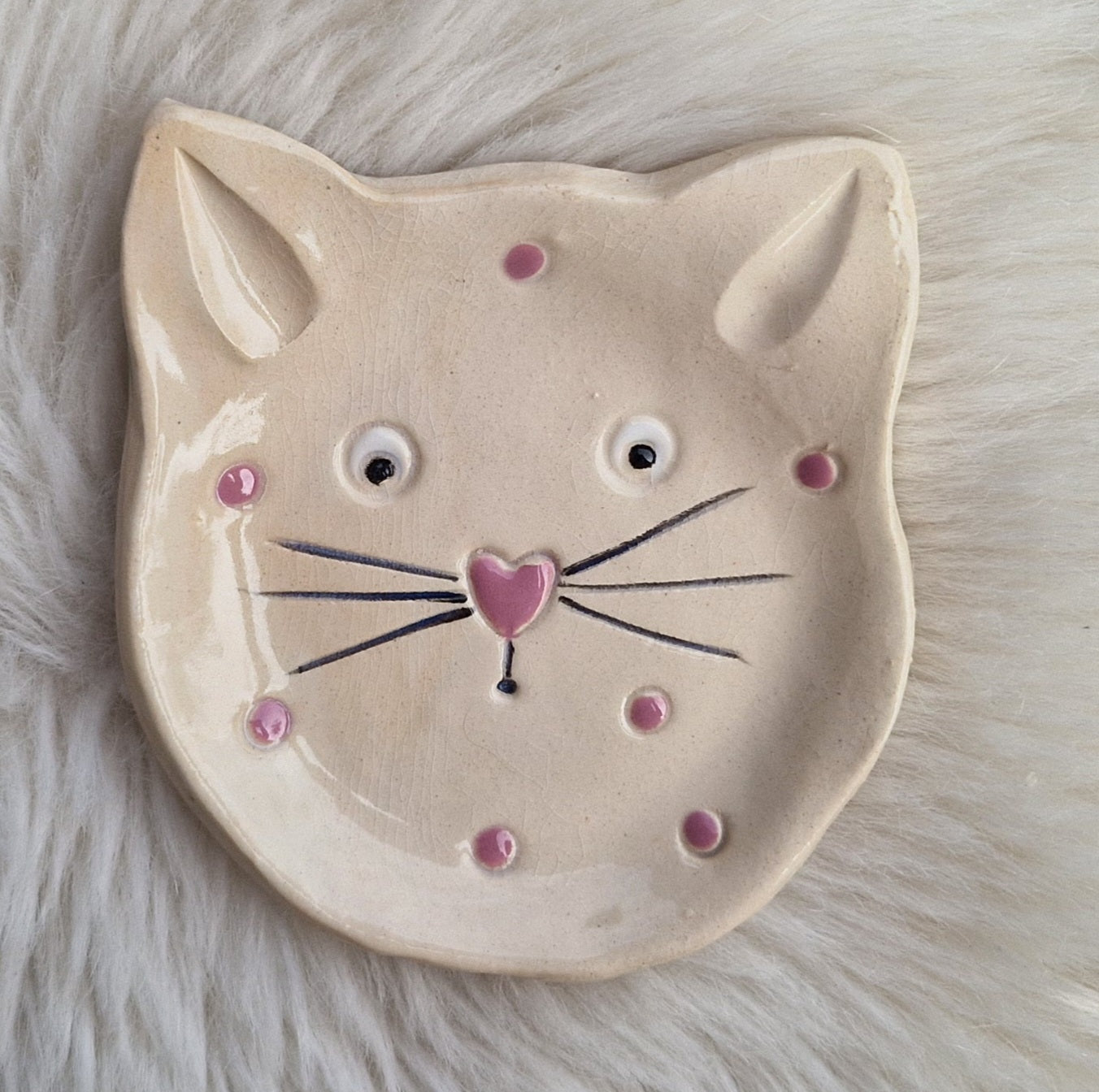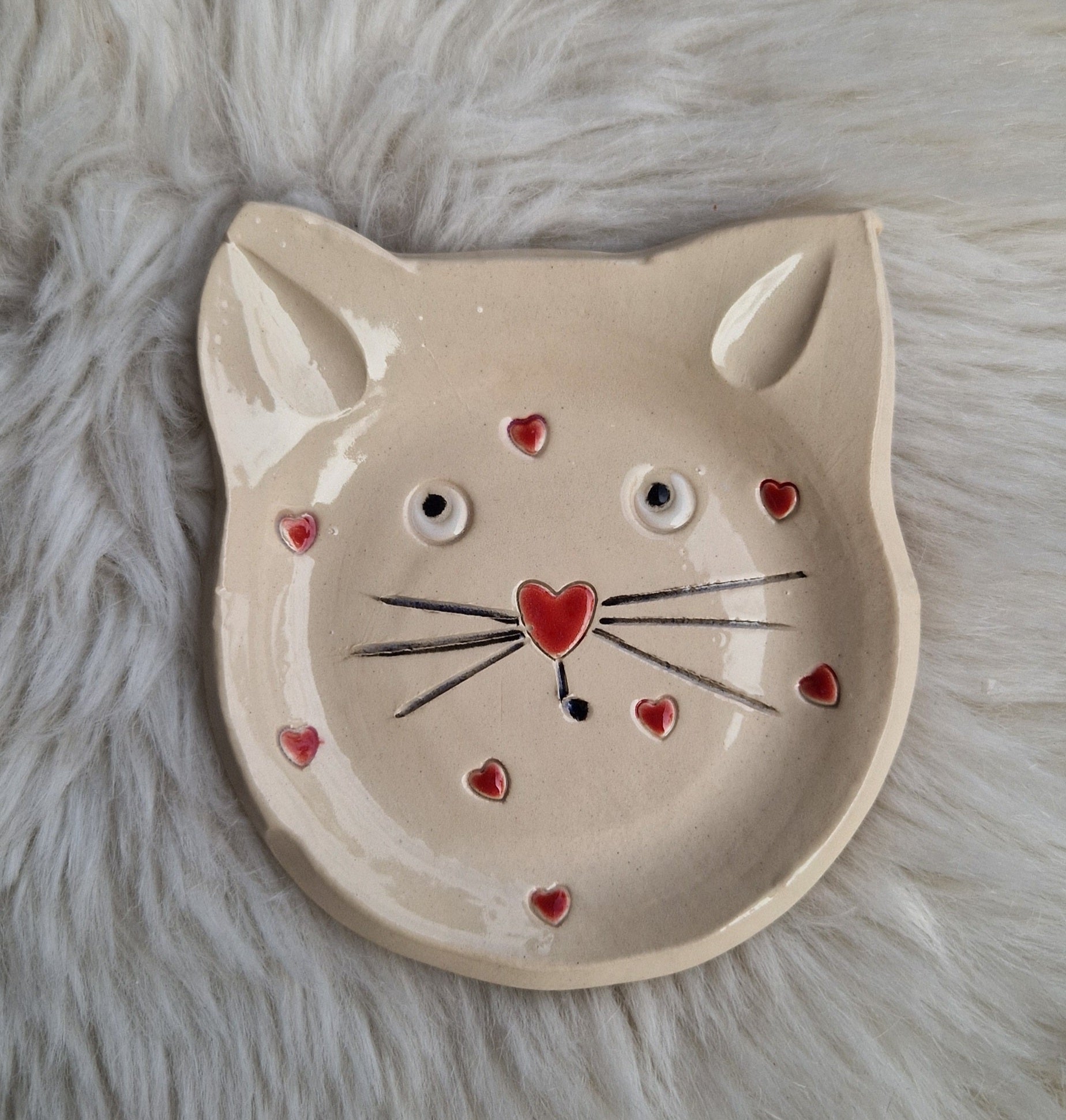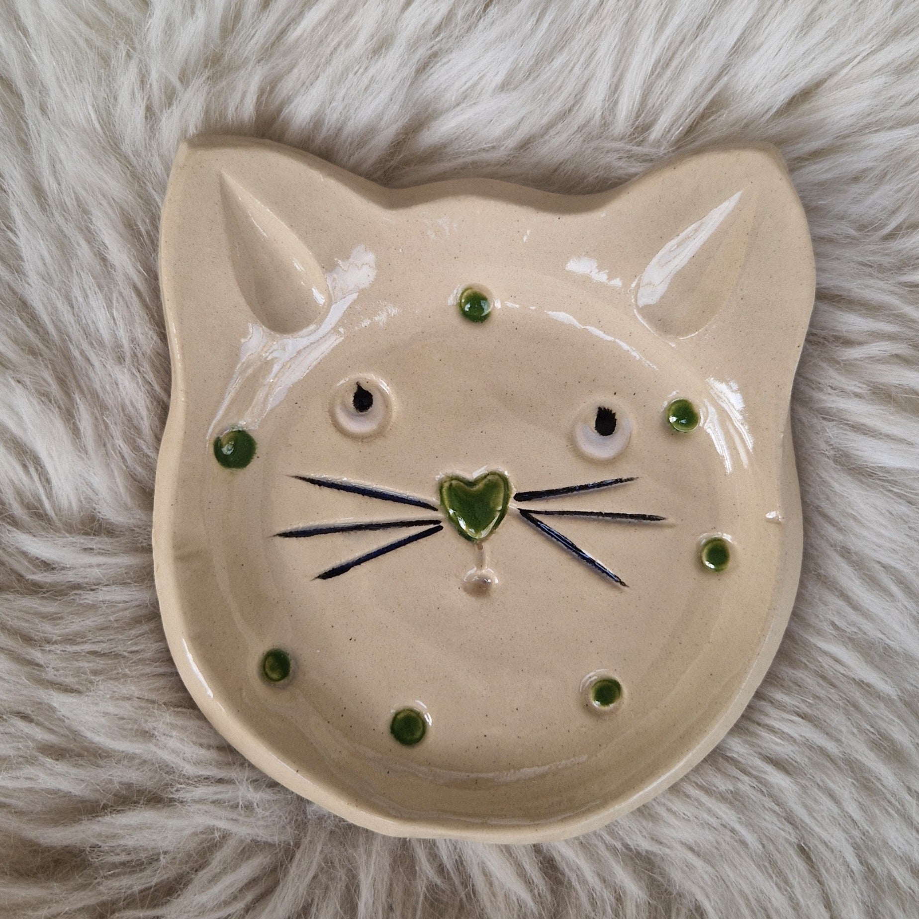 Praktischer Schleckteller für Katzen in formschöner Katzenkopf-Optik. Ideal für Leckerlis, Schleckpasten oder als Medikamententellerchen.