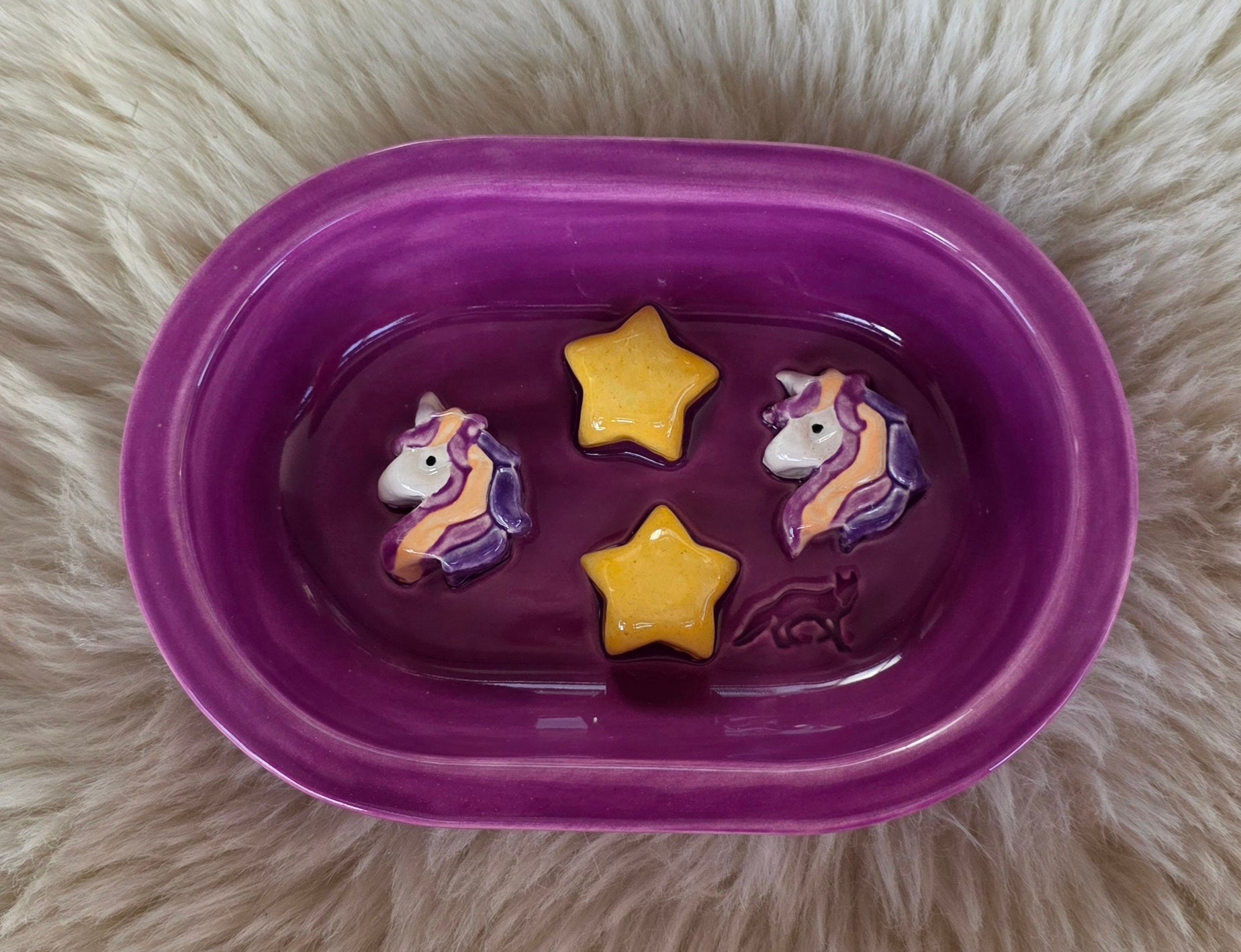 Da es sich um Handarbeit handelt, wird es nie 100% perfekt sein. Es können z.B. kleine Nadelstiche in der Glasur auftreten oder die Farben leichte Unterschiede aufweisen.