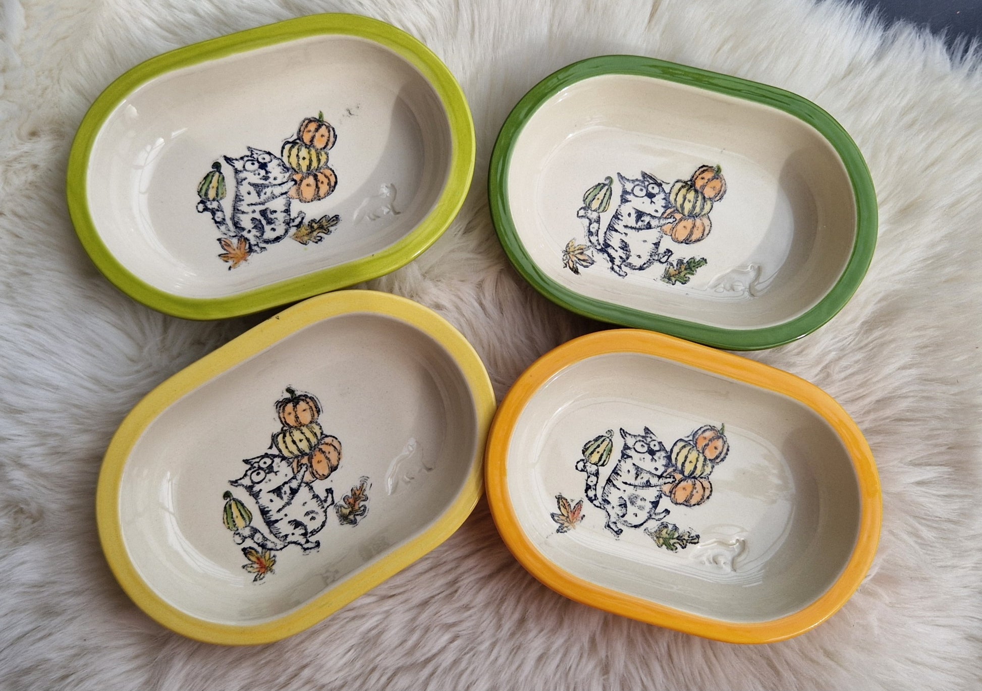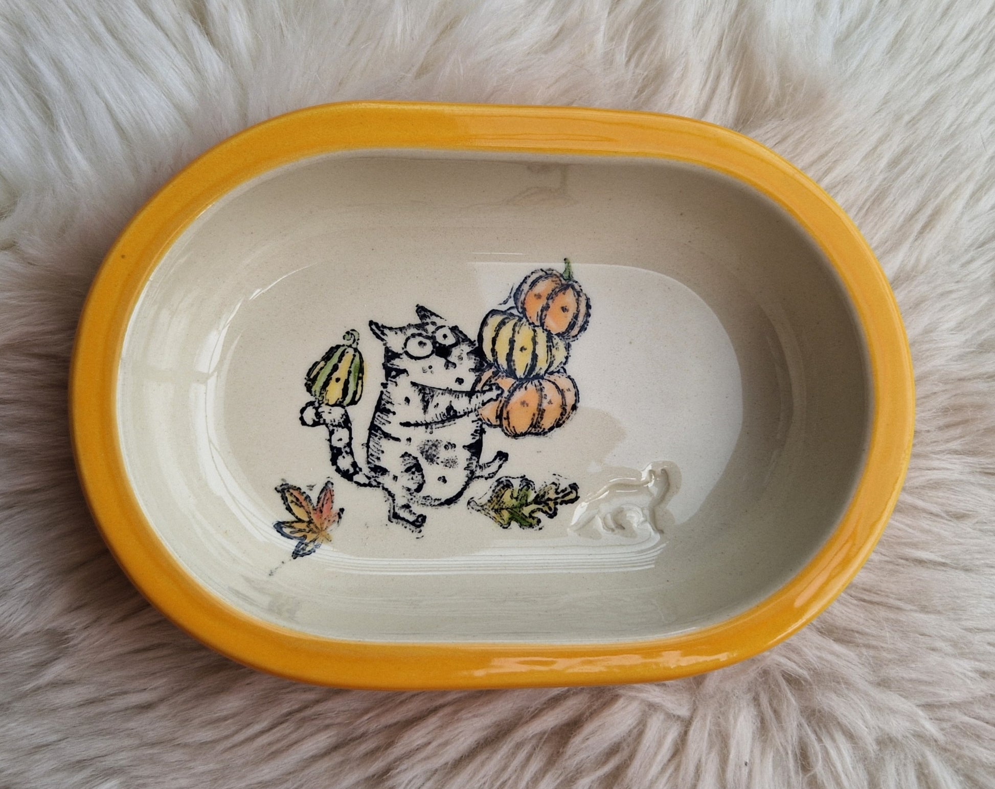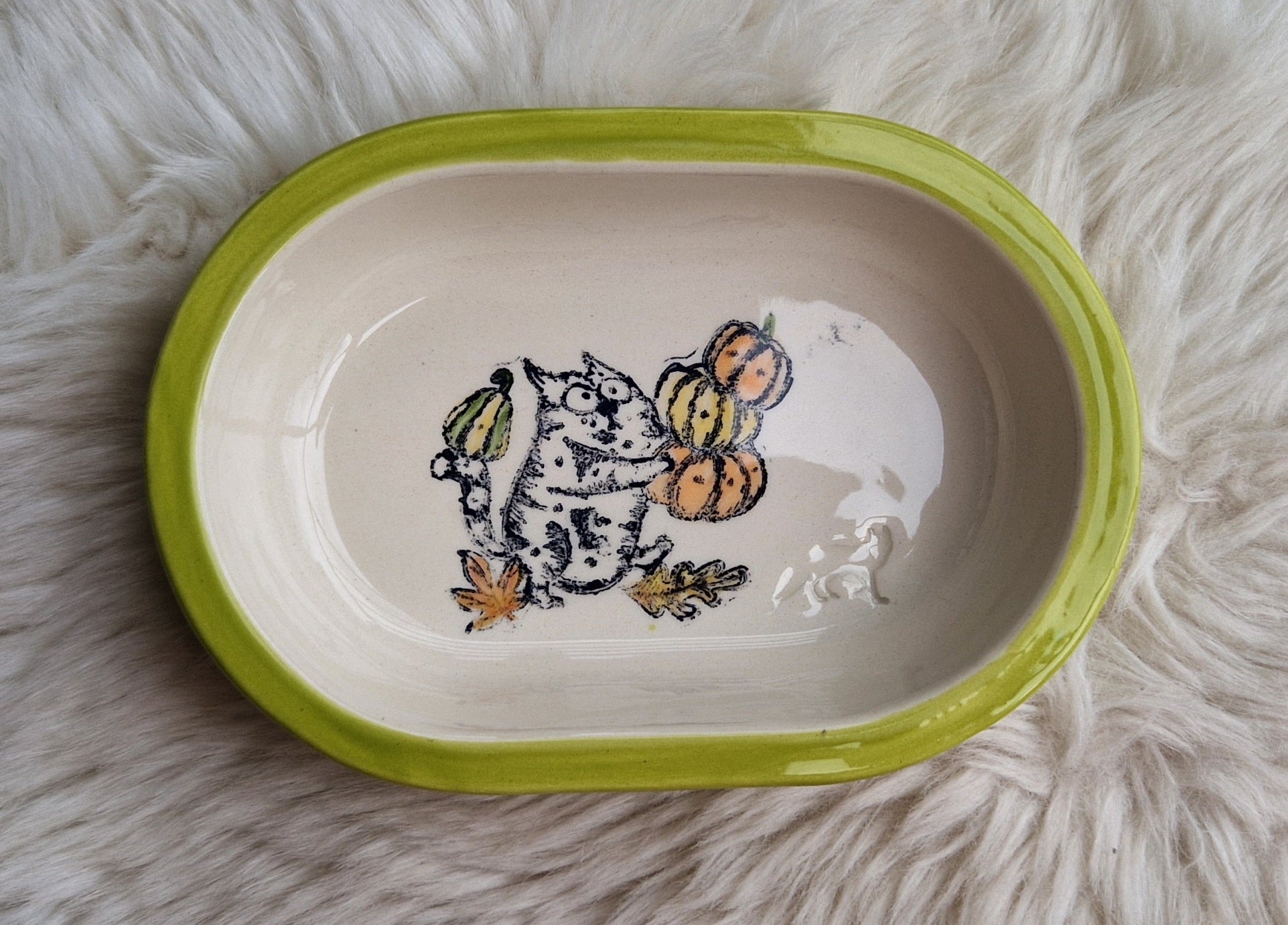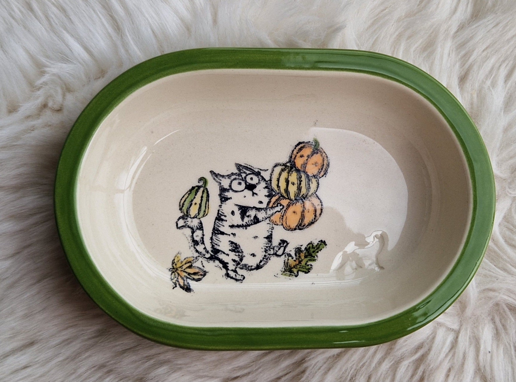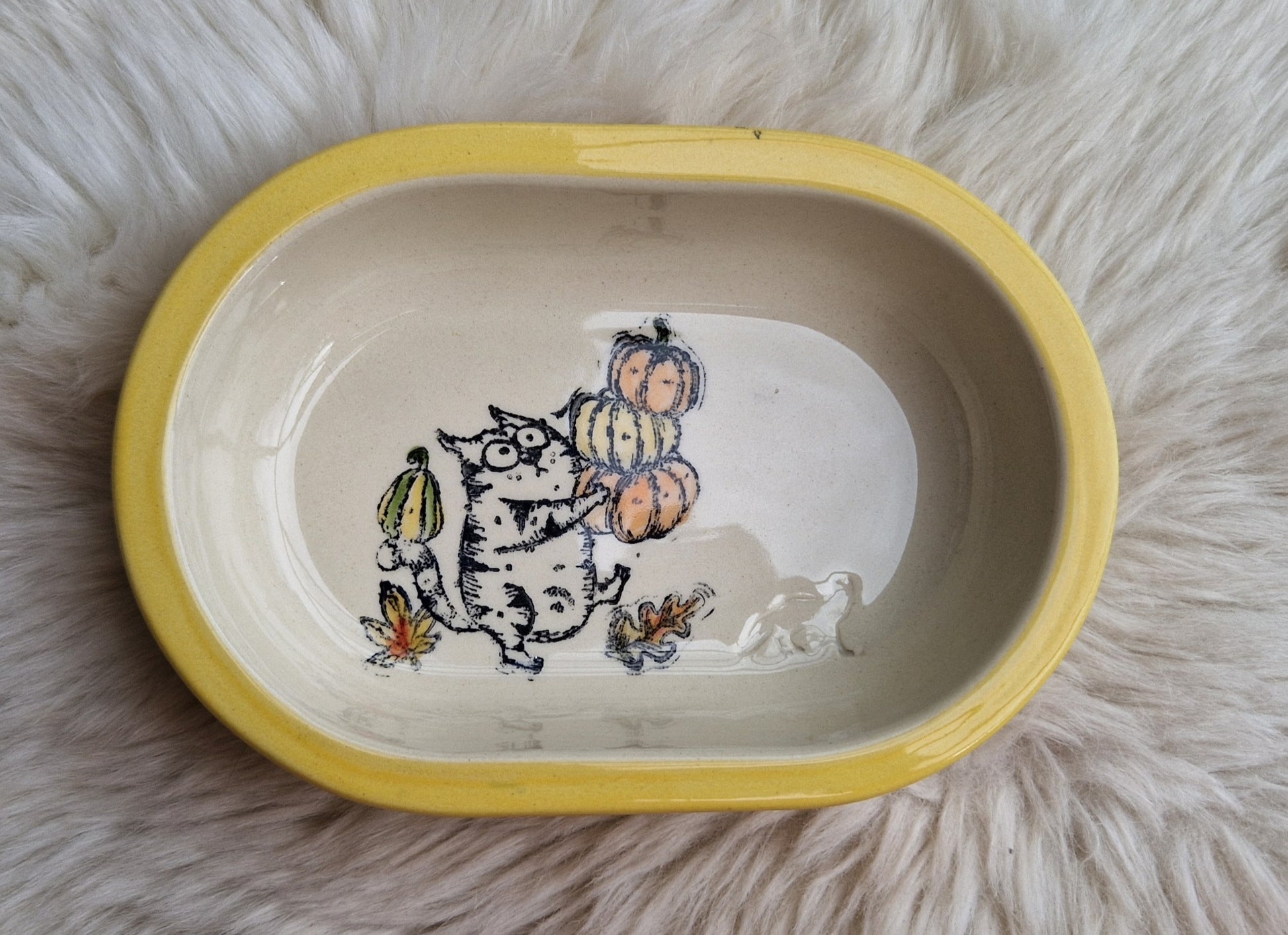 Keramik Schale für Surefeed mit Farbrand "Finn bei der Kürbisernte"