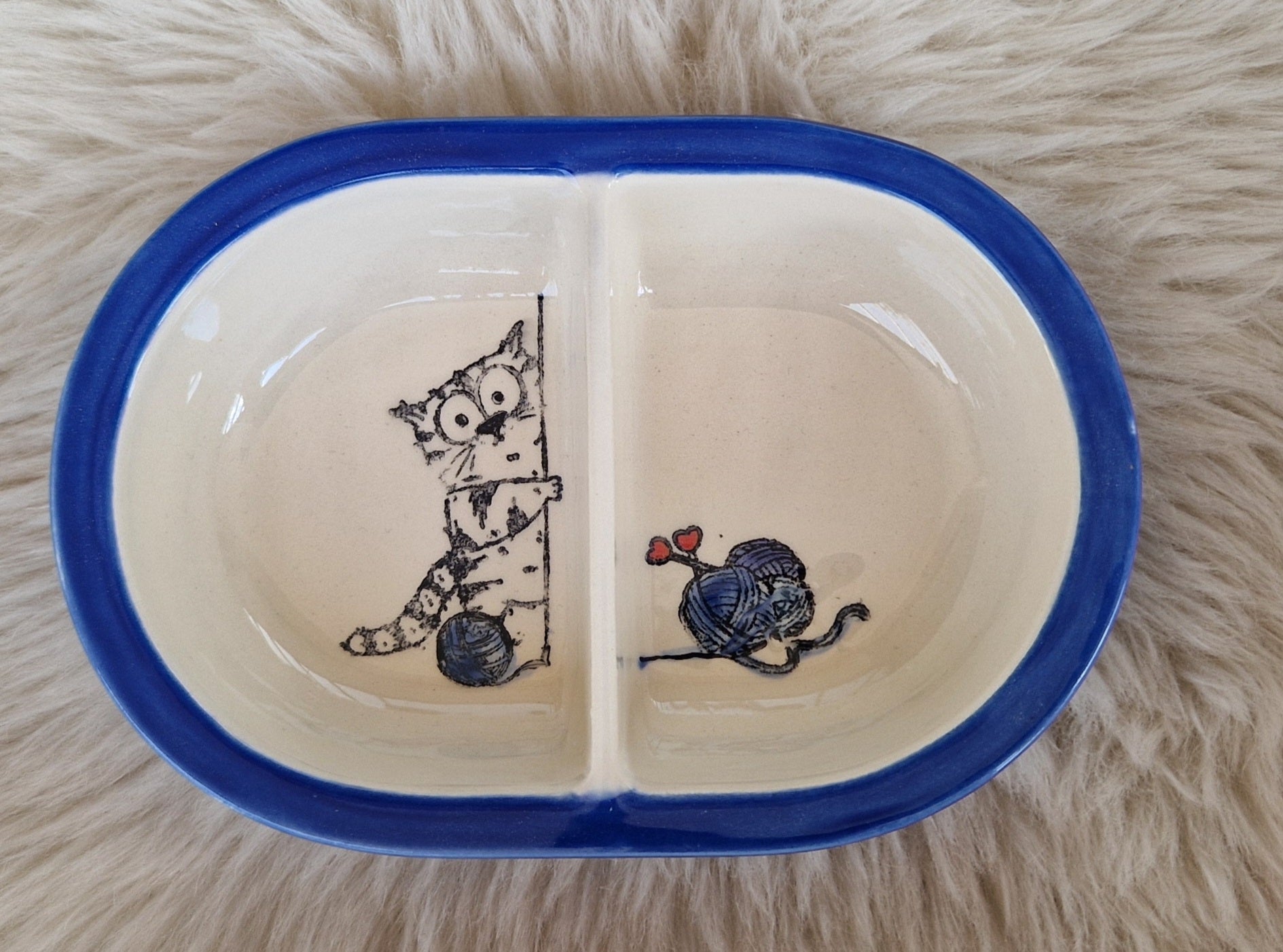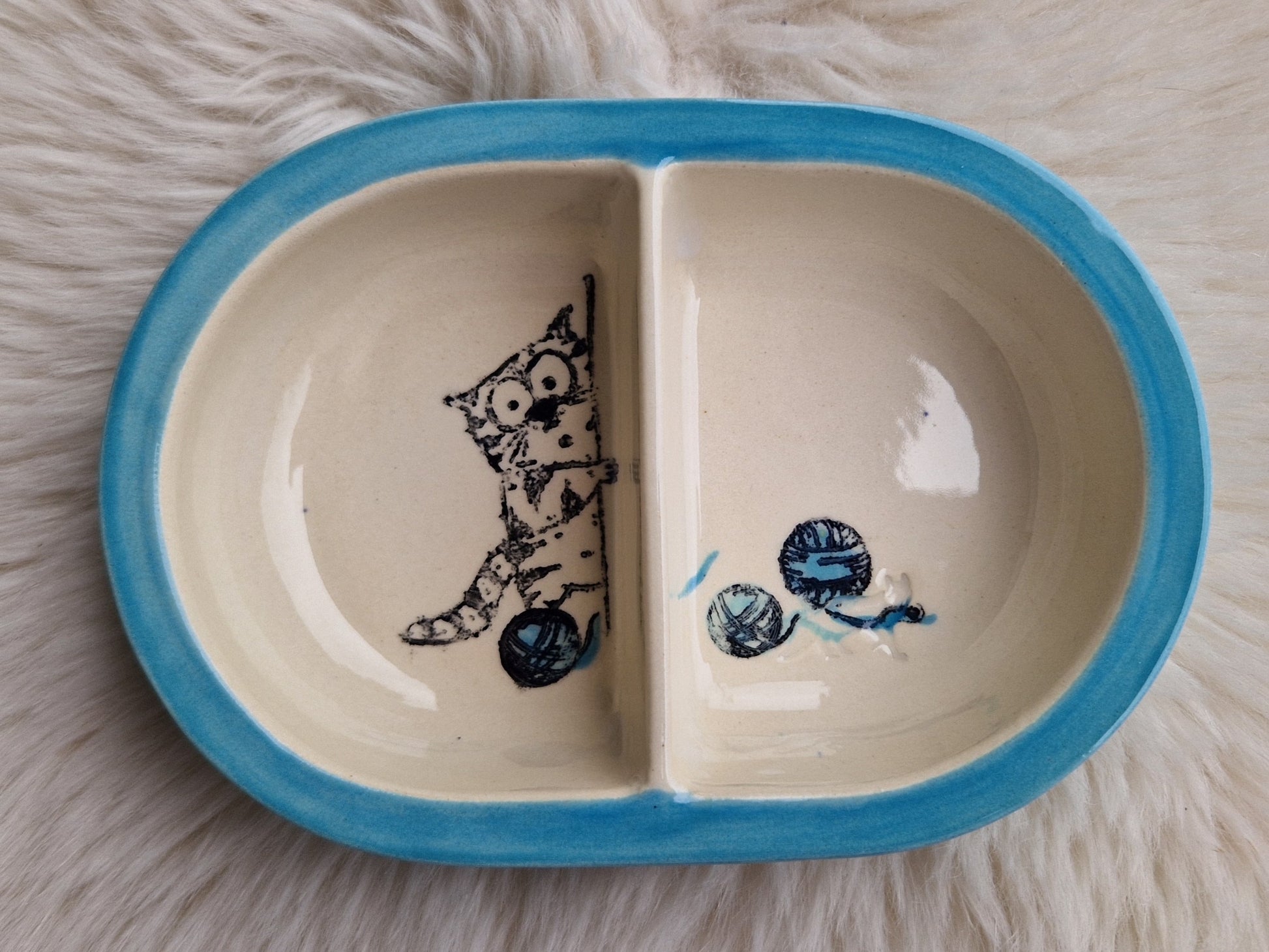 Keramik Schale für Surefeed mit Farbrand "Finn im Woll-Paradies" geteilte Ausführung