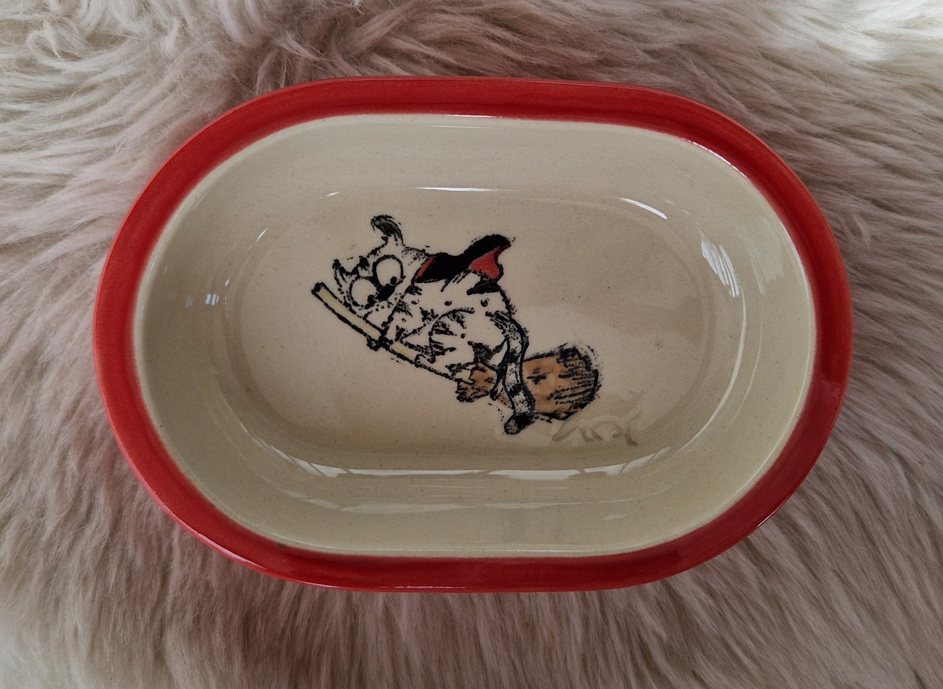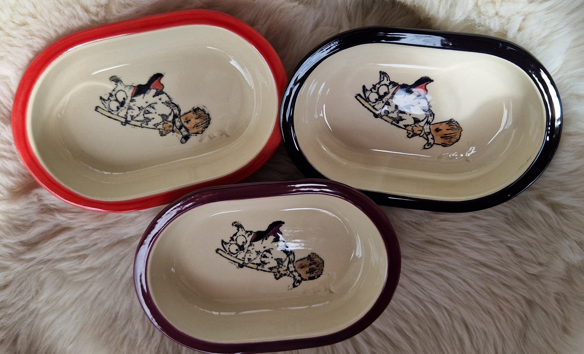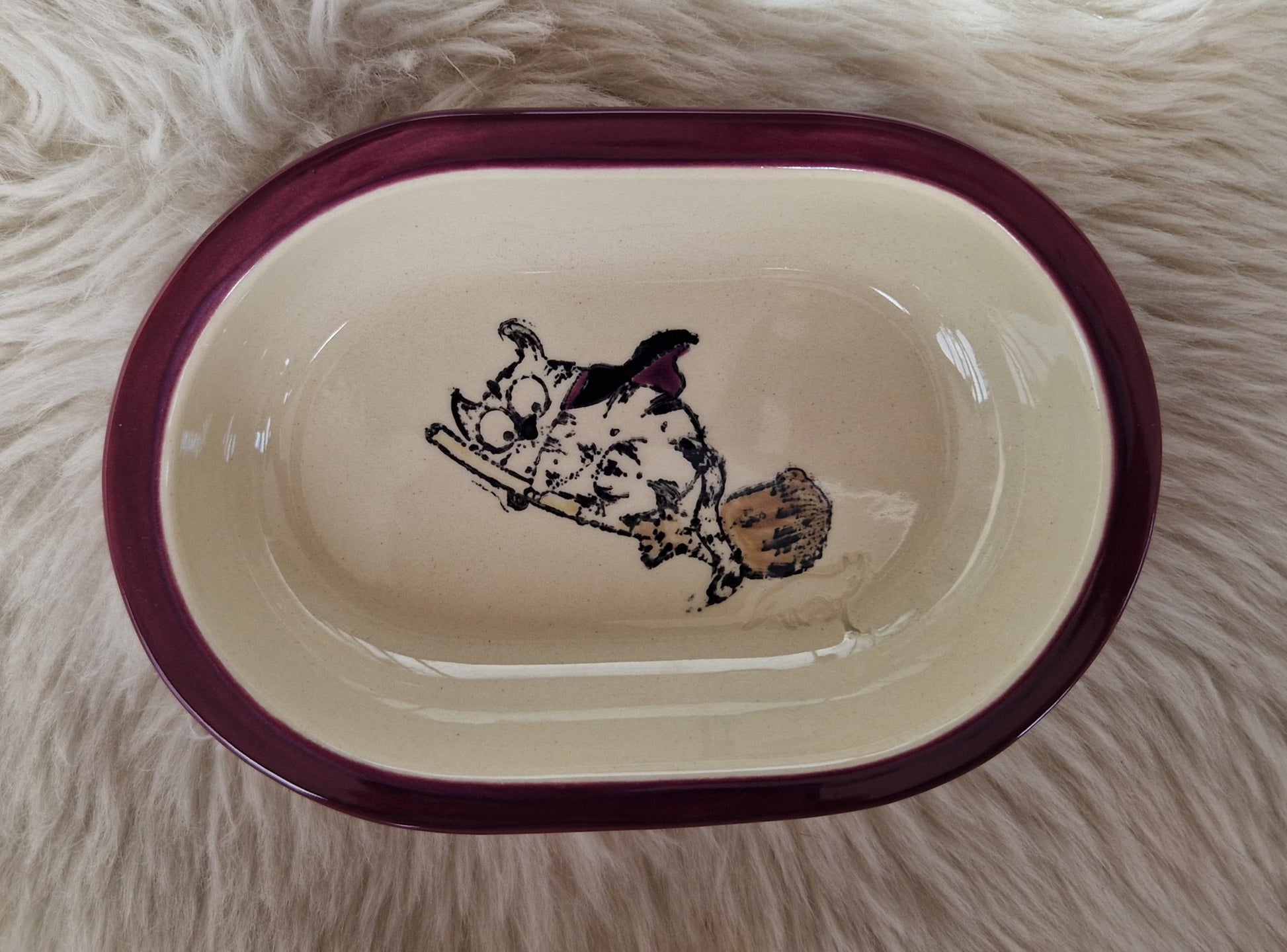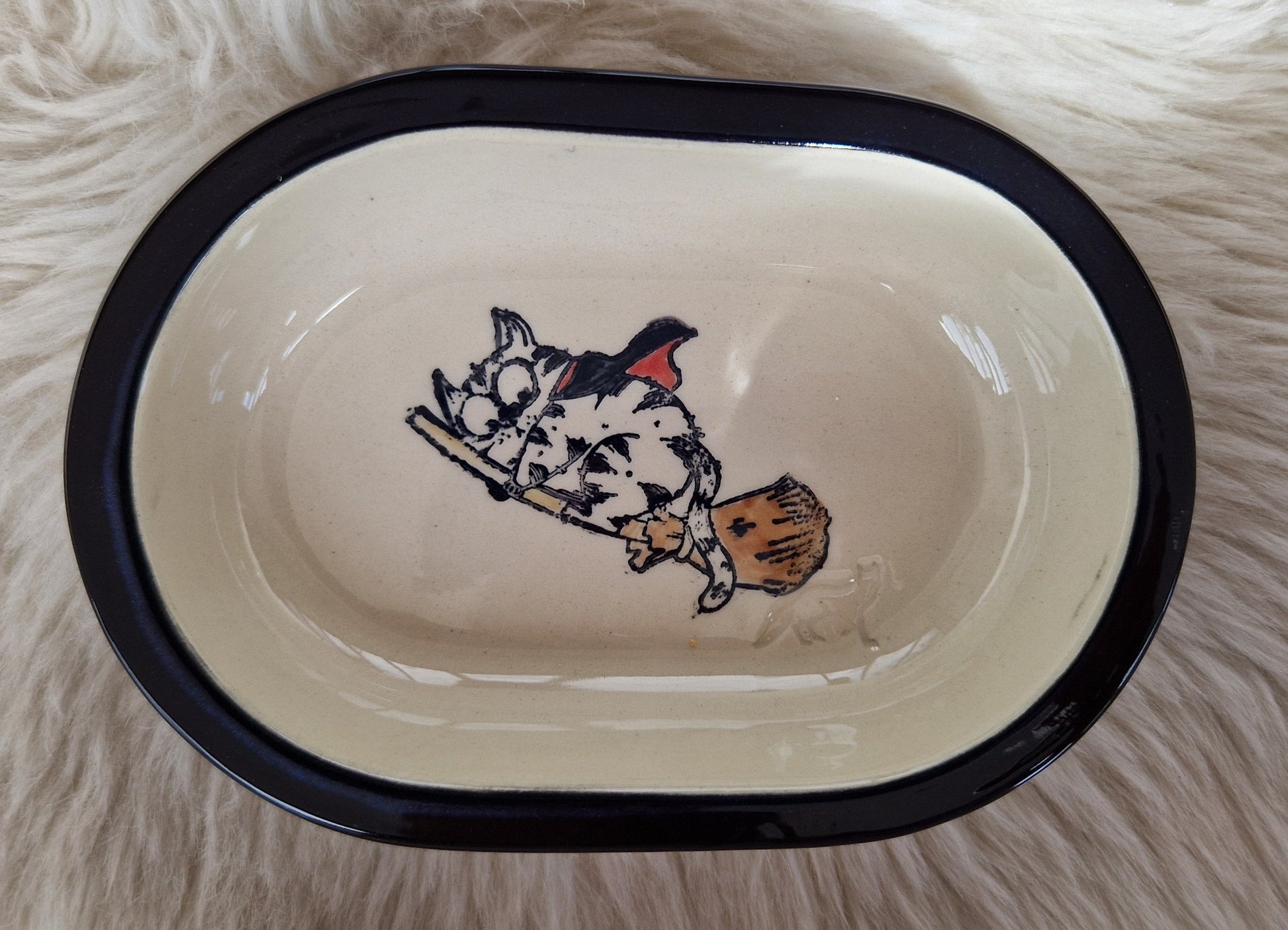 Keramik Schale für Surefeed mit Farbrand "Finn reitet auf dem Besen"