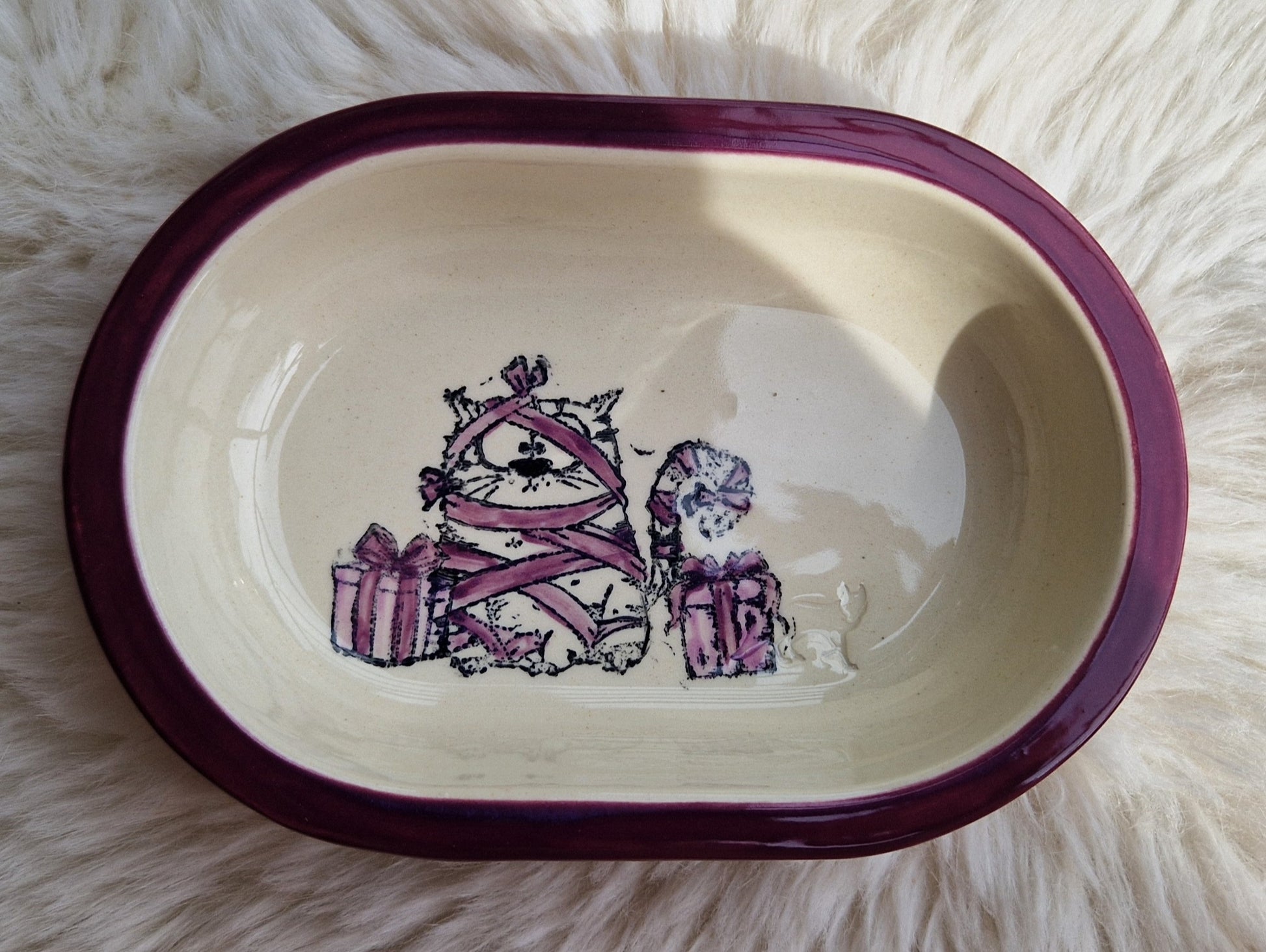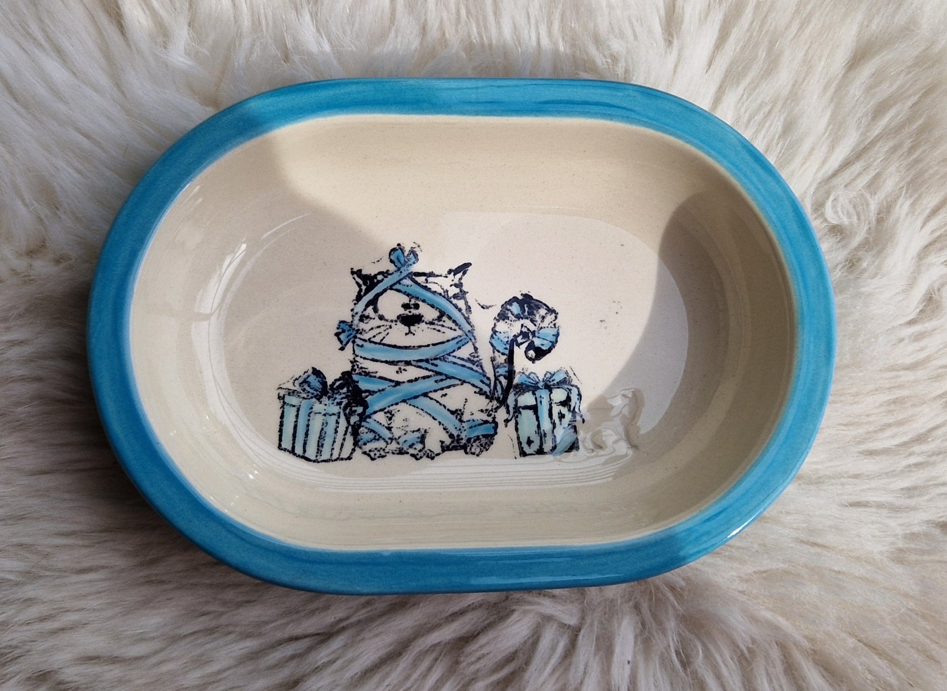 Keramik Schale für Surefeed mit Farbrand "Finn übt verpacken"