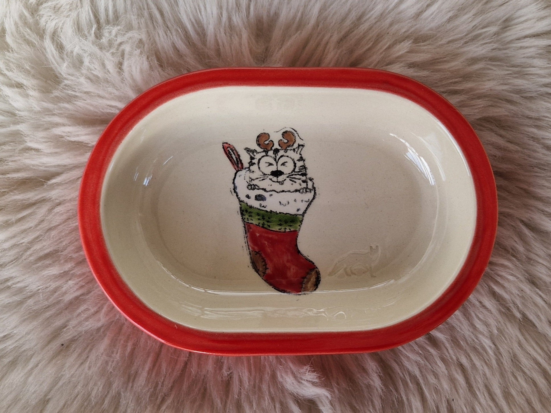 Keramik Schale für Surefeed mit Farbrand "Gefüllte Weihnachtssocke mit Finn"