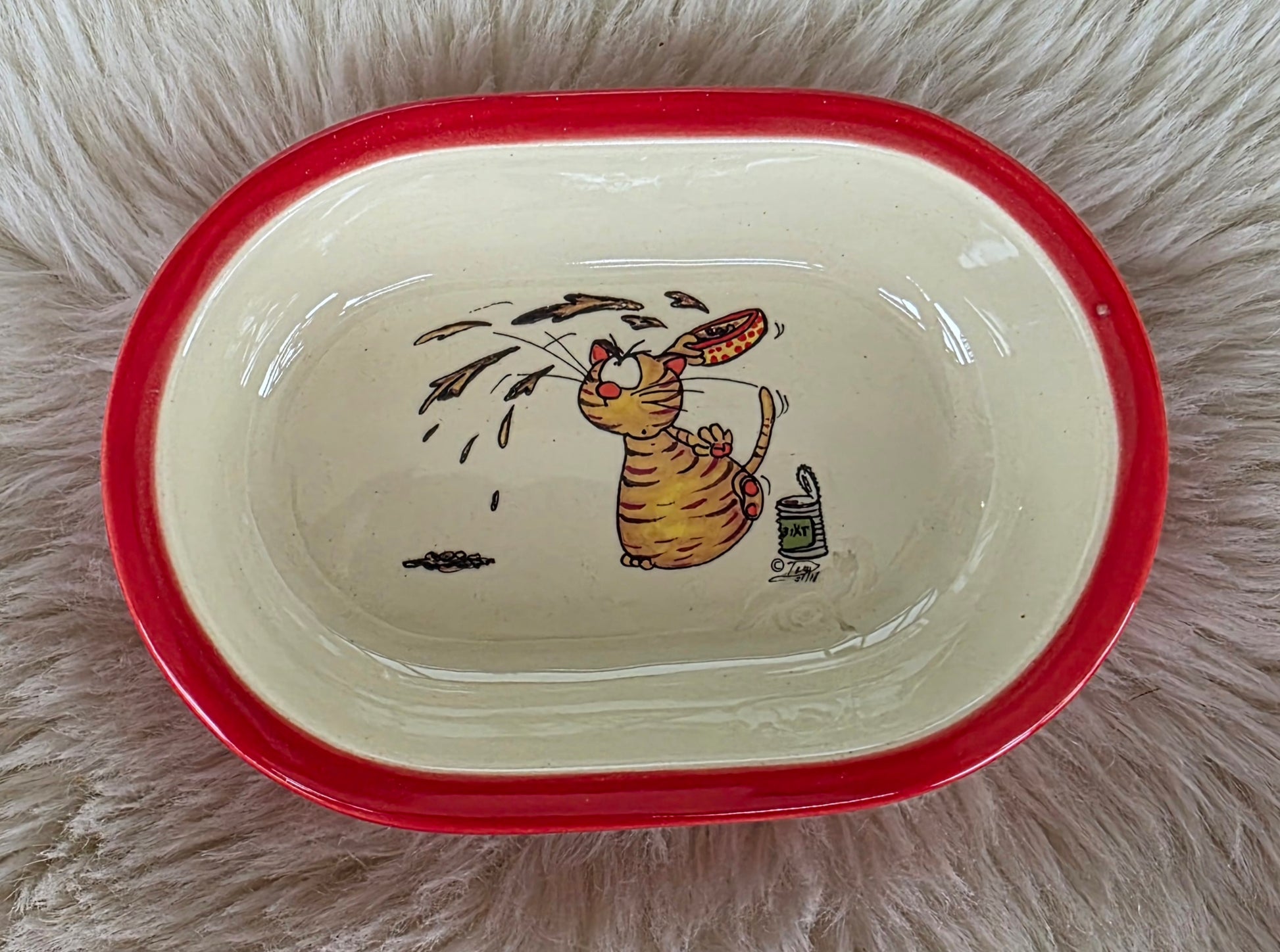 Keramik Schale für Surefeed mit Farbrand und Pucki wirft Futter